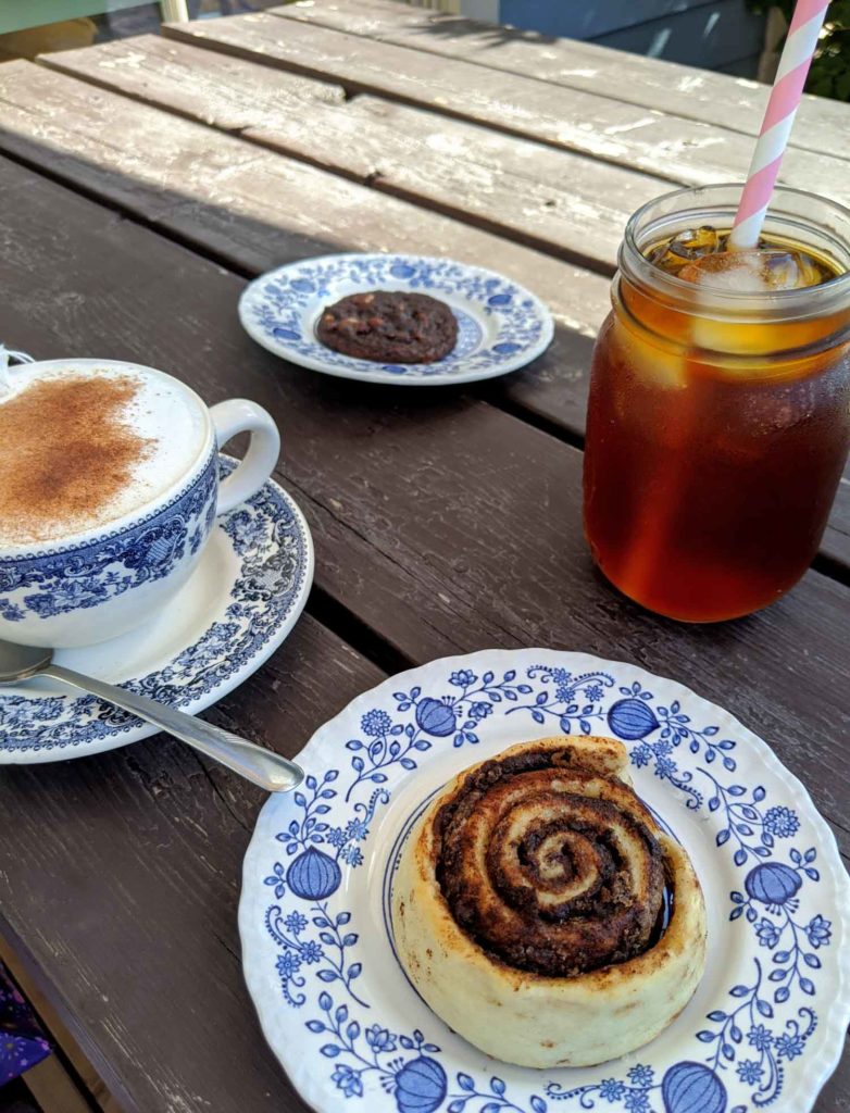 And Evergreen Cafe has all of it. Lots of coffee options including cold brew, tea, baked goods, sandwiches and soups.