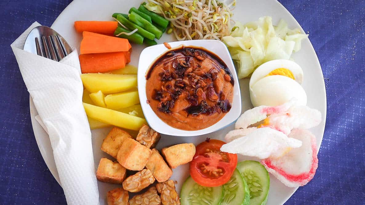- Traditionally there is no protein or carb like in gado gado, which usually has tofu, boiled egg or potato