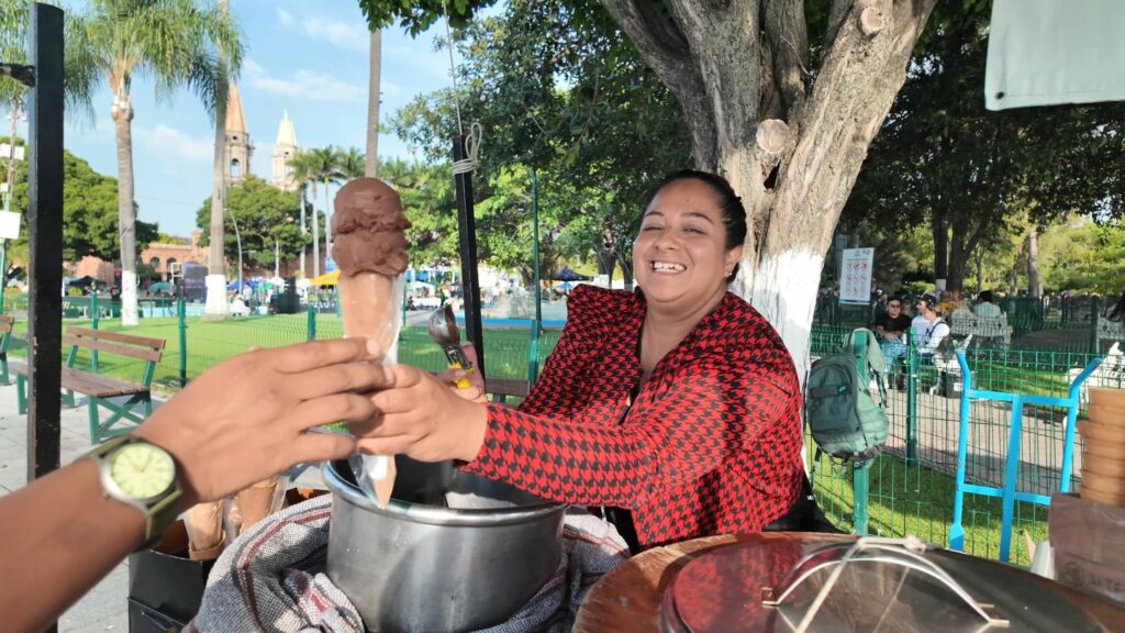 Along the lakefront, vendors hand-churn ice cream in metal cylinders packed with salt and ice. This is nieves de garrafa, ice cream made the old way. You’ll find flavors like strawberry, coconut, pine nut and lime.